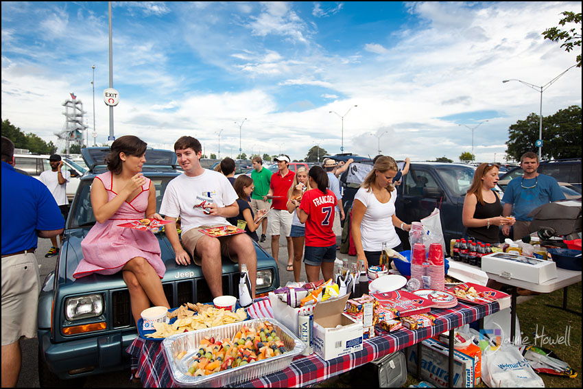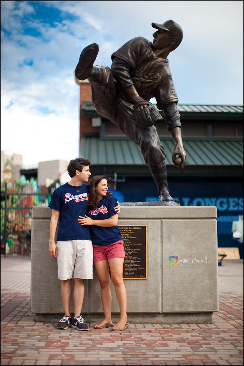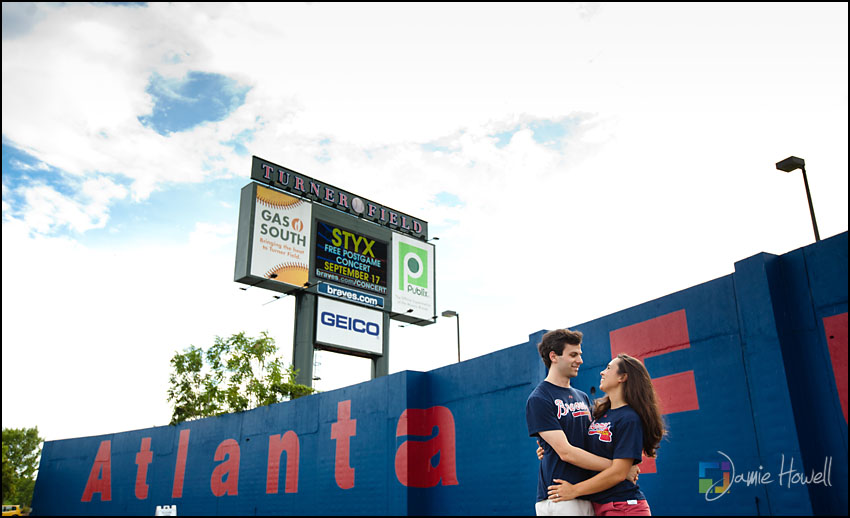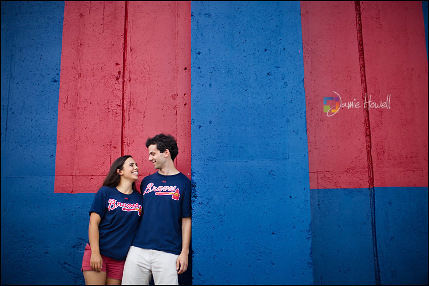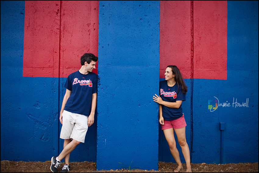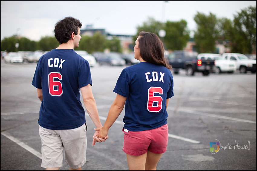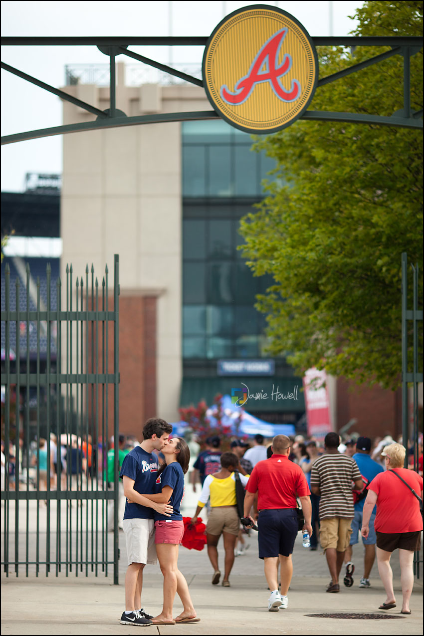 I love a change of pace and this session was definitely a change of pace. Meagan and Dan were having an engagement tailgating party at Turner Field and wanted me to come photograph it. Mostly this was a couple hanging out and spending time with some good friends before the game. We dodged rain a couple hours earlier and strict parking lot police at the stadium who made us take the tents down (for a tailgate – who knew?). Nevertheless, a great time was had by all. Here are some of my favorites: