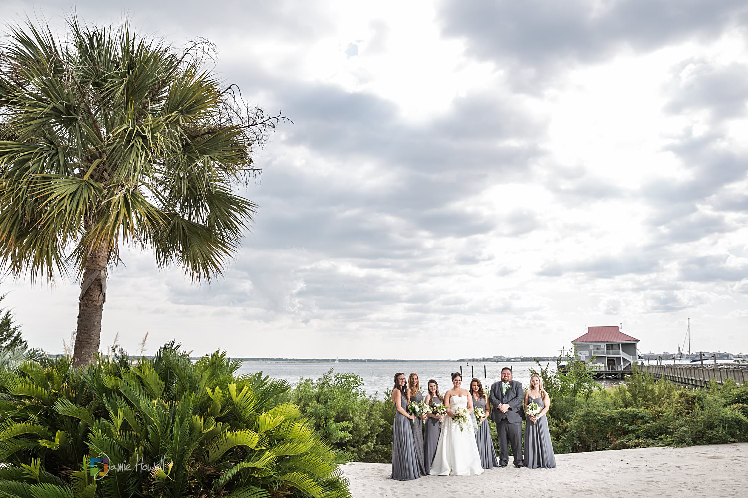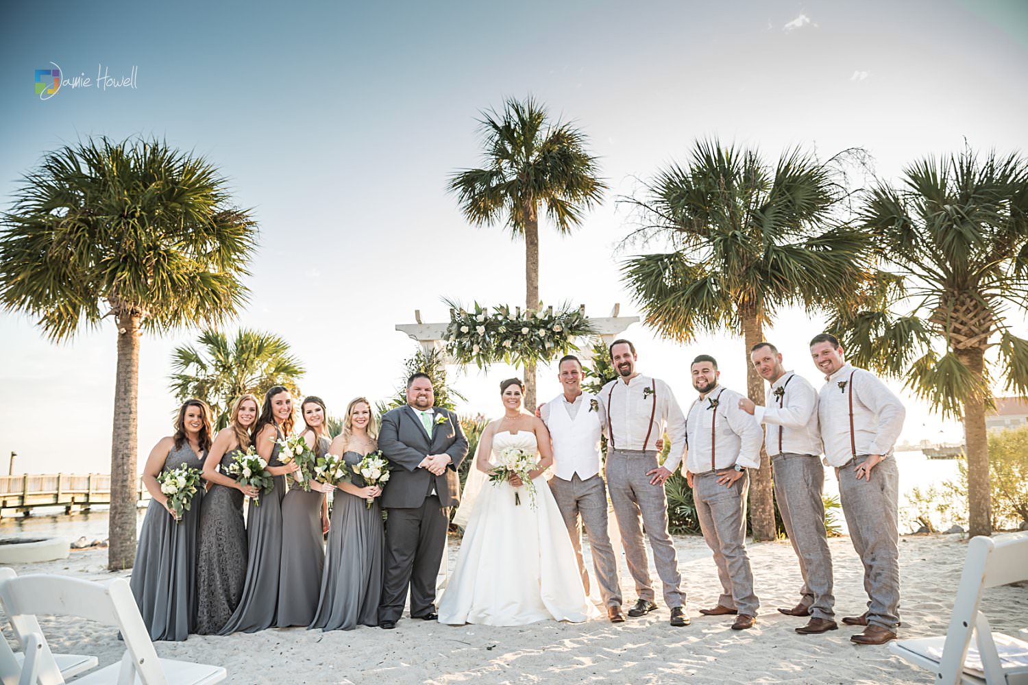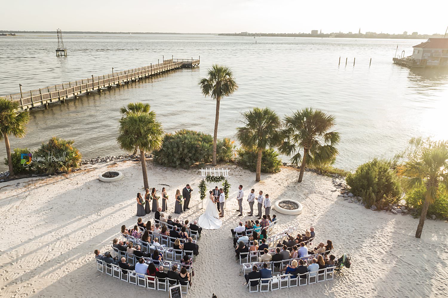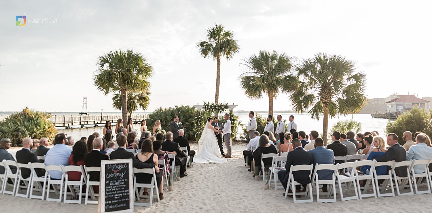 I really loved this wedding. Emily and Scott got married on the beach at Charleston Harbor Resort . They celebrated with their closest friends and family present in a beautiful, relaxing atmosphere. Hurricane Irma had rolled through just one week before and while most of the resort was fine, the storm did damage the dock they were supposed to get married on. That “forced” them to get married on the beach instead, which ironically was probably even prettier than the dock they were originally going to get married on. I woke up the morning of the wedding at sunrise, went out to the docks, and got some pretty amazing aerial images of the resort and ceremony site – which is something I’m not able to do for most venues. I really couldn’t have asked for more.