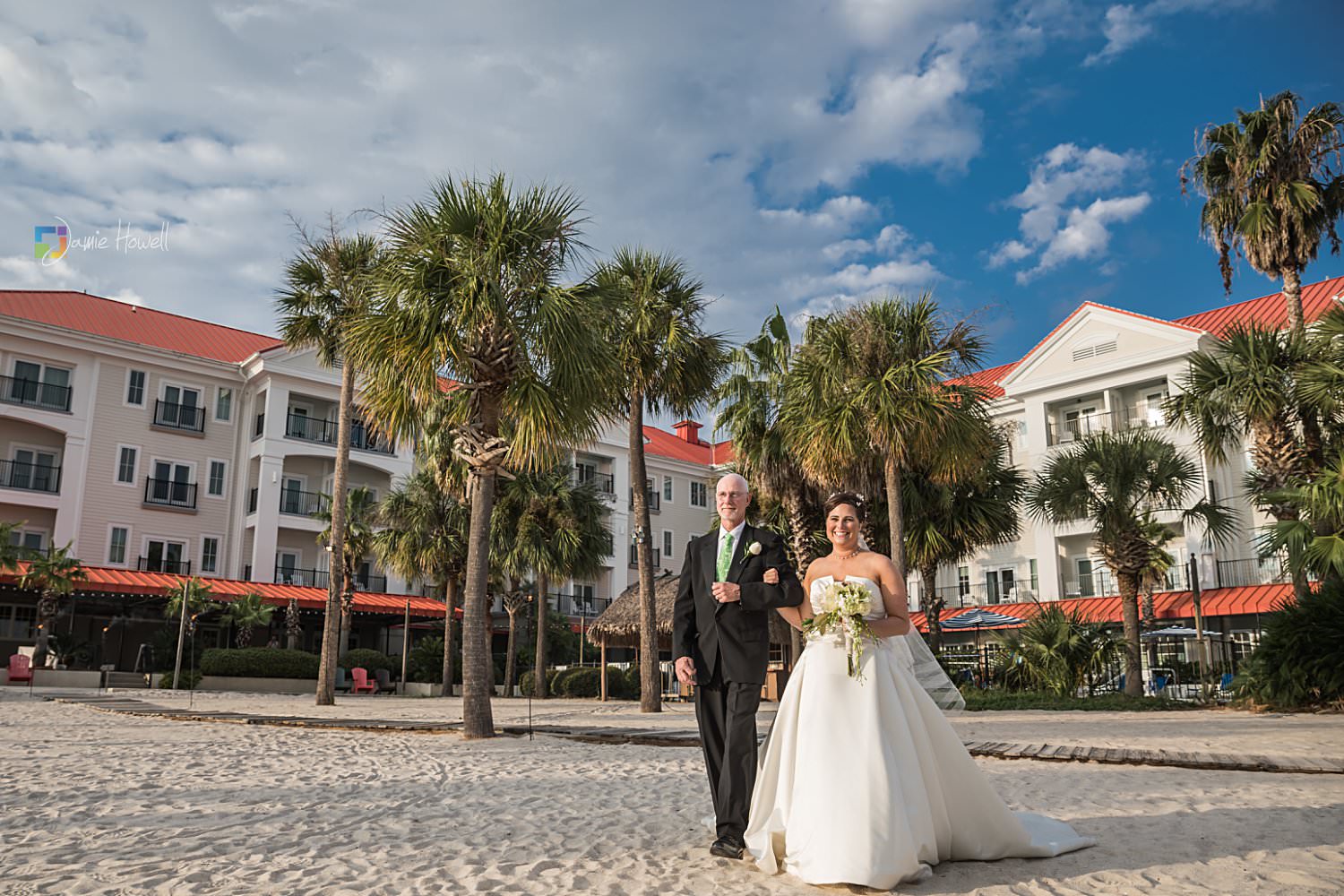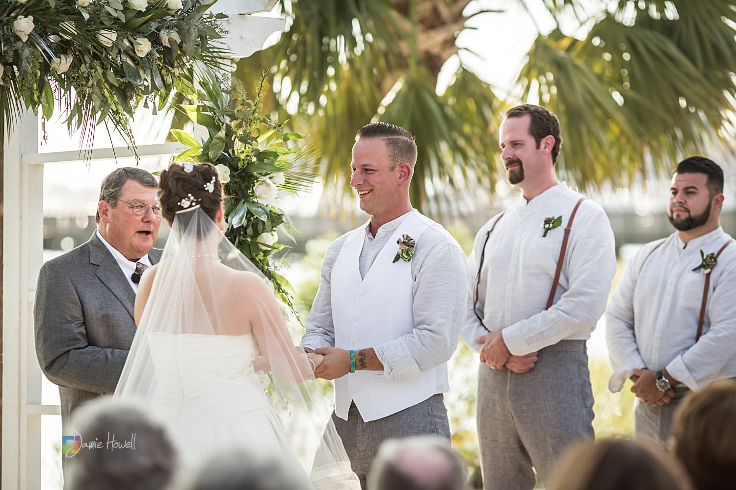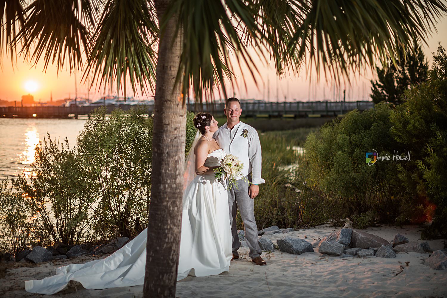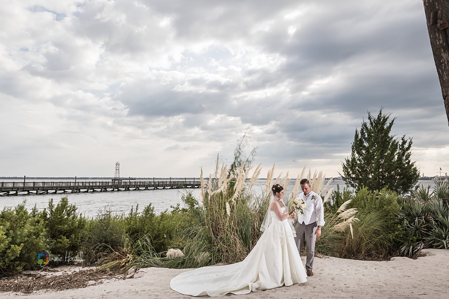 I really loved this wedding. Emily and Scott got married on the beach at Charleston Harbor Resort . They celebrated with their closest friends and family present in a beautiful, relaxing atmosphere. Hurricane Irma had rolled through just one week before and while most of the resort was fine, the storm did damage the dock they were supposed to get married on. That “forced” them to get married on the beach instead, which ironically was probably even prettier than the dock they were originally going to get married on. I woke up the morning of the wedding at sunrise, went out to the docks, and got some pretty amazing aerial images of the resort and ceremony site – which is something I’m not able to do for most venues. I really couldn’t have asked for more.
