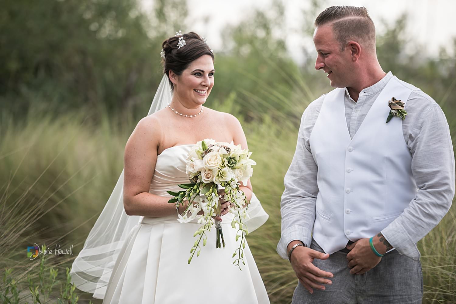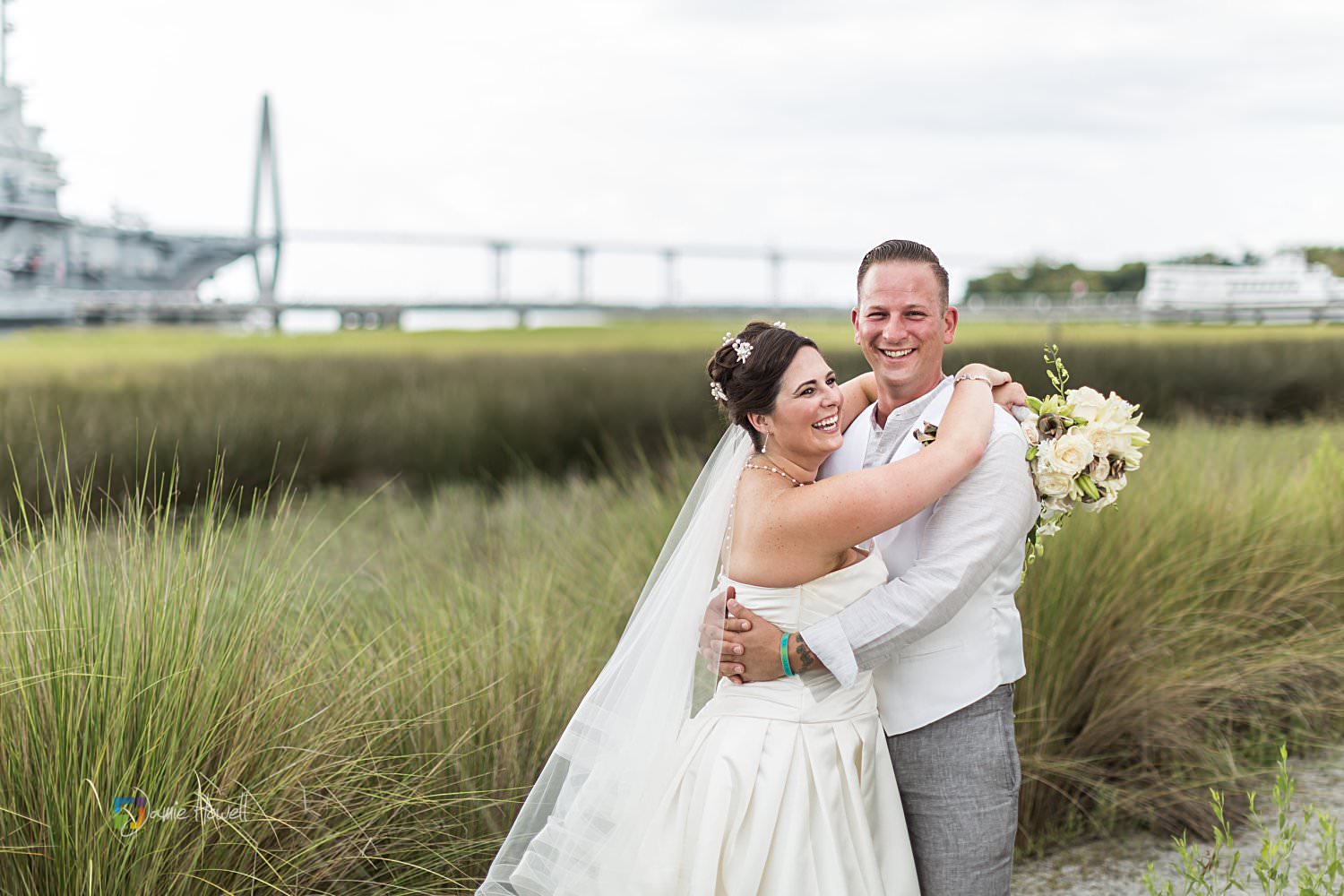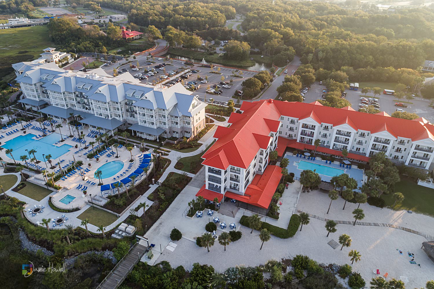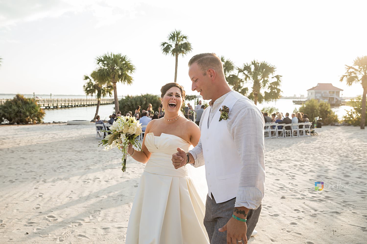 I really loved this wedding. Emily and Scott got married on the beach at Charleston Harbor Resort . They celebrated with their closest friends and family present in a beautiful, relaxing atmosphere. Hurricane Irma had rolled through just one week before and while most of the resort was fine, the storm did damage the dock they were supposed to get married on. That “forced” them to get married on the beach instead, which ironically was probably even prettier than the dock they were originally going to get married on. I woke up the morning of the wedding at sunrise, went out to the docks, and got some pretty amazing aerial images of the resort and ceremony site – which is something I’m not able to do for most venues. I really couldn’t have asked for more.