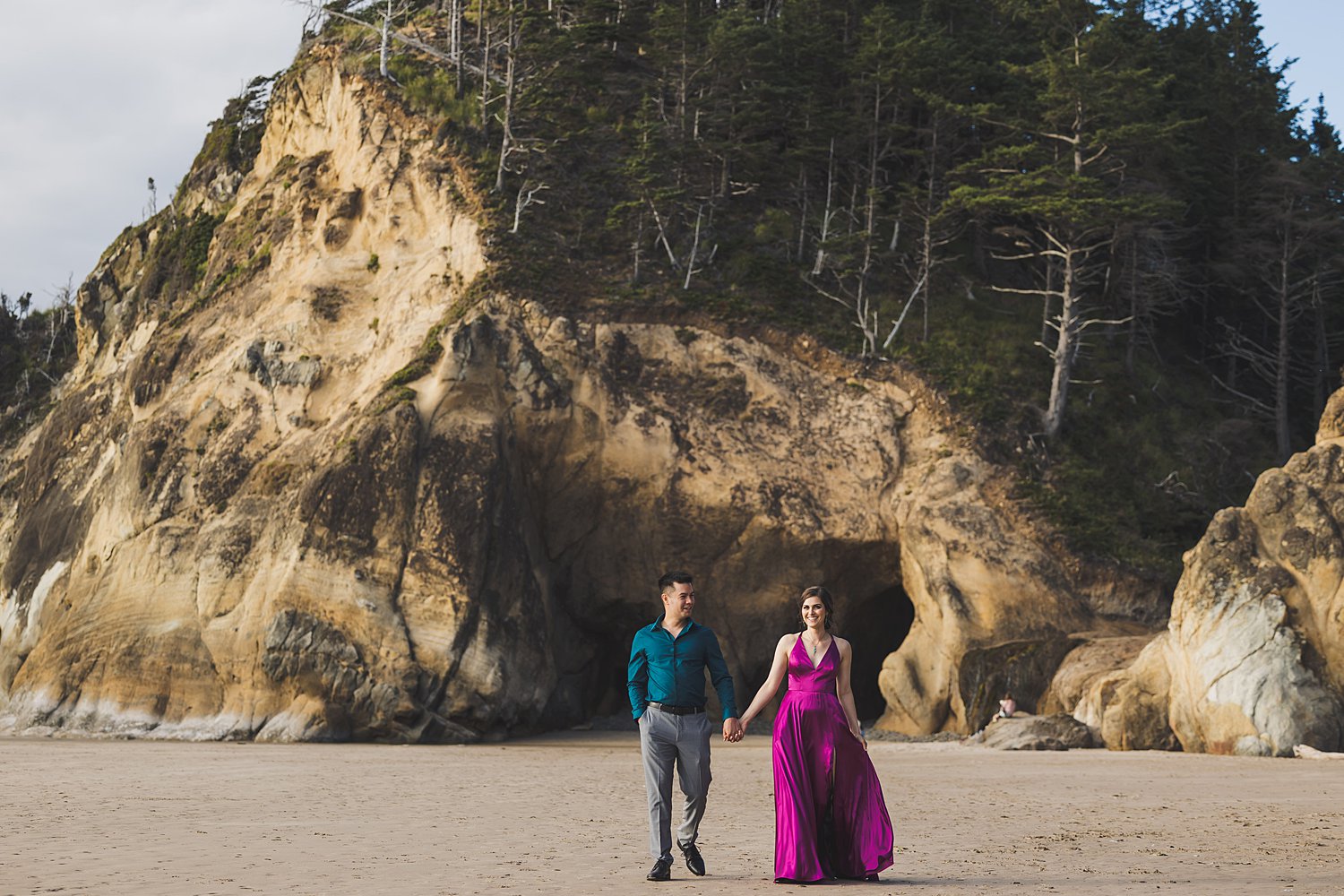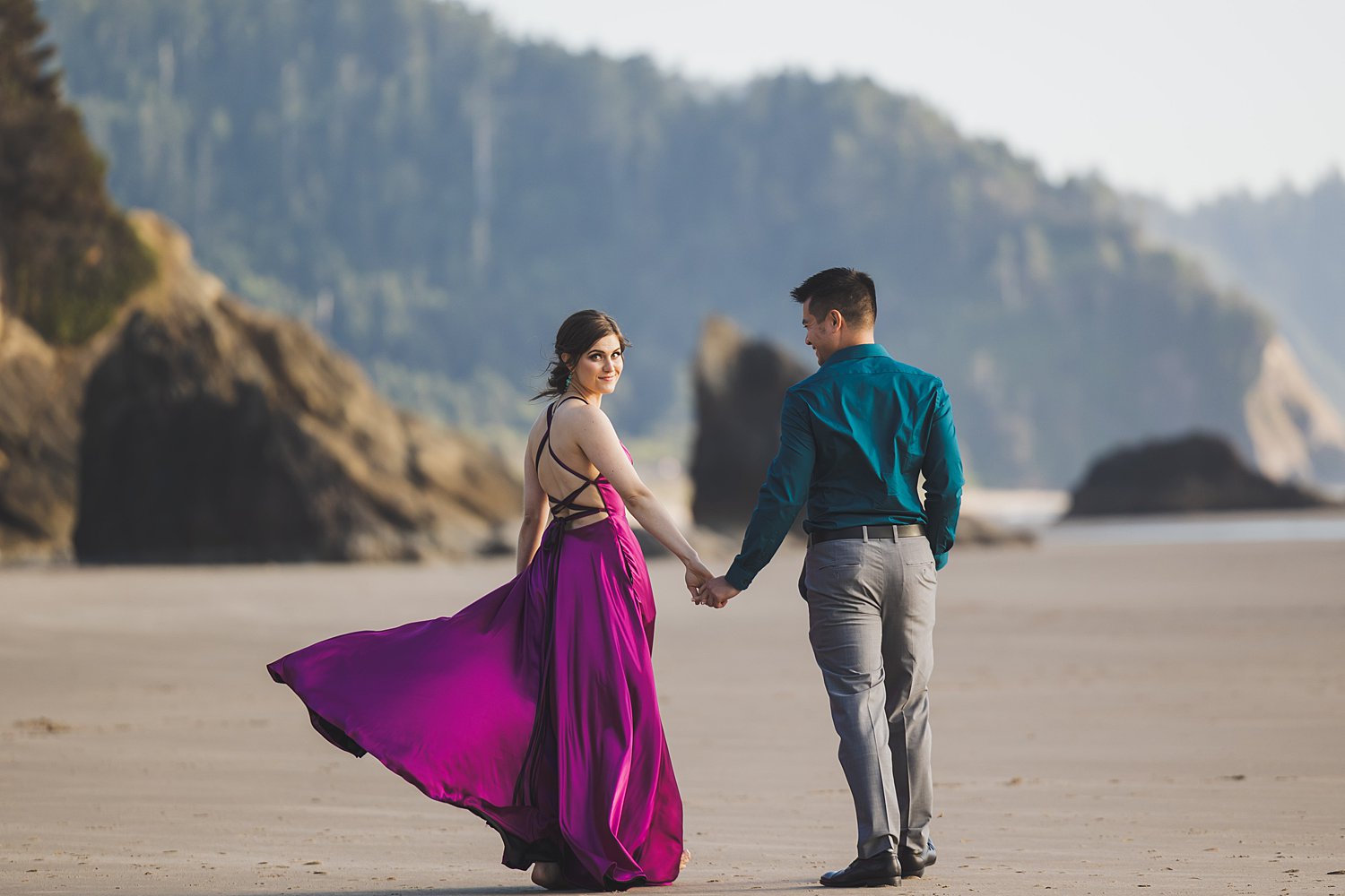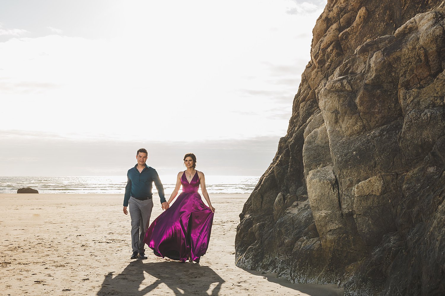 I had the honor of traveling to Arch Cape Oregon for Elise and Michael’s wedding recently. I got to spend the entire weekend with them and their families right there on the coast, with one of the most amazing views you could imagine. The day before their wedding, we went out onto the beach for a quick engagement session and the views did not disappoint.