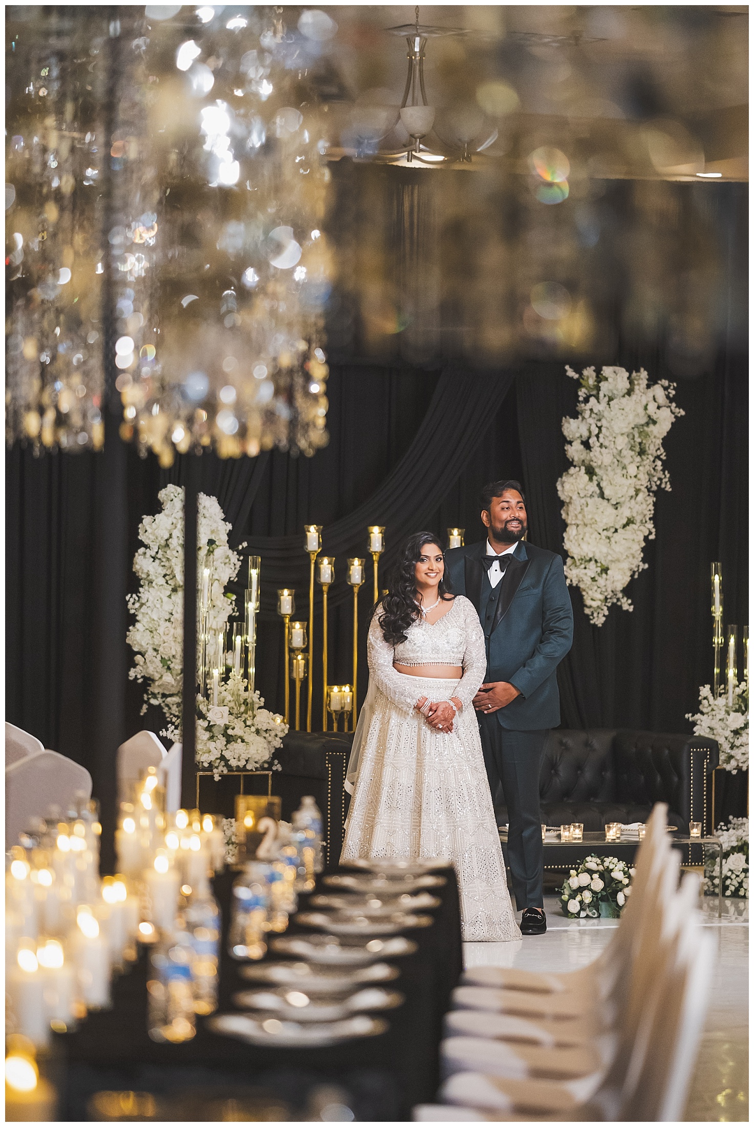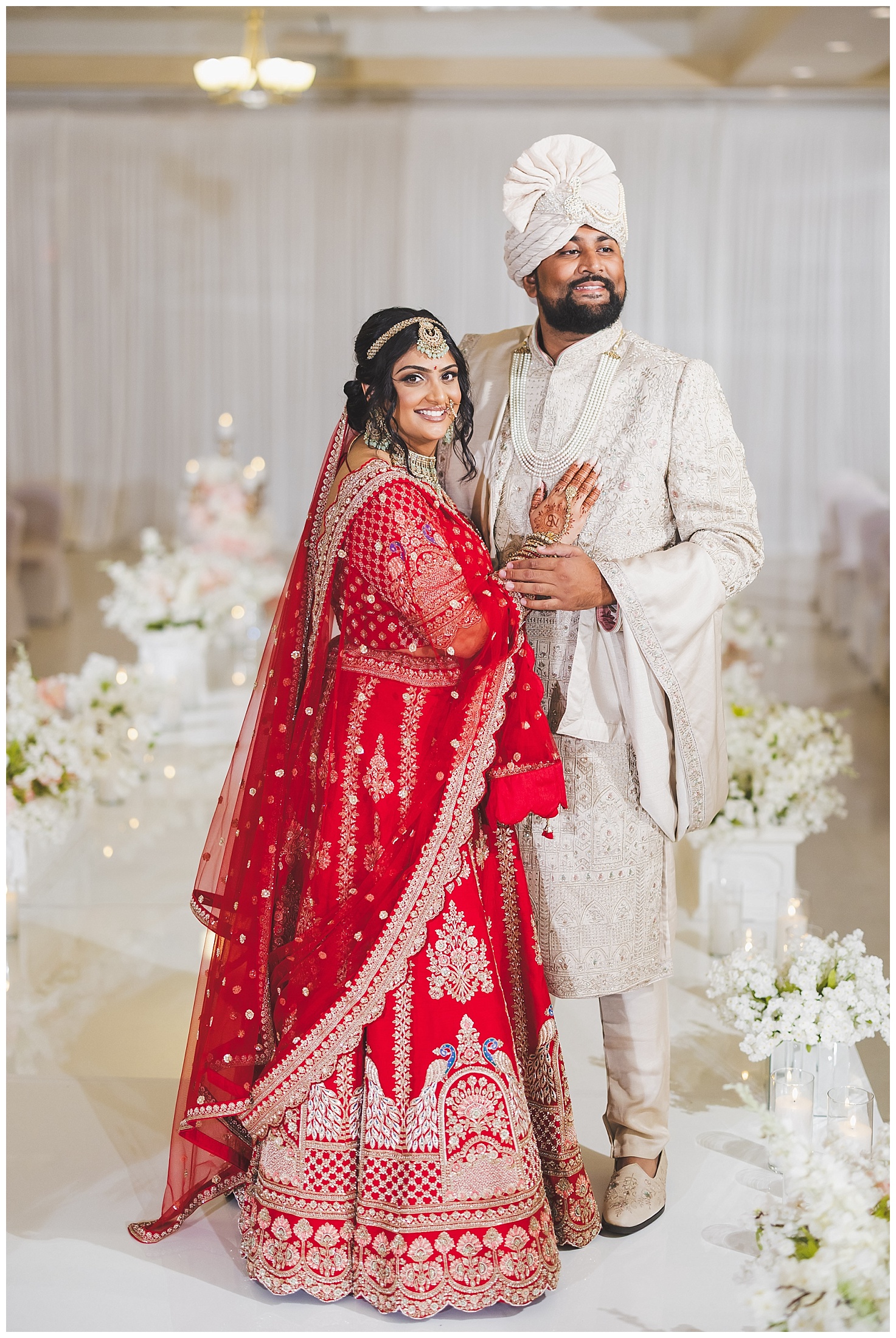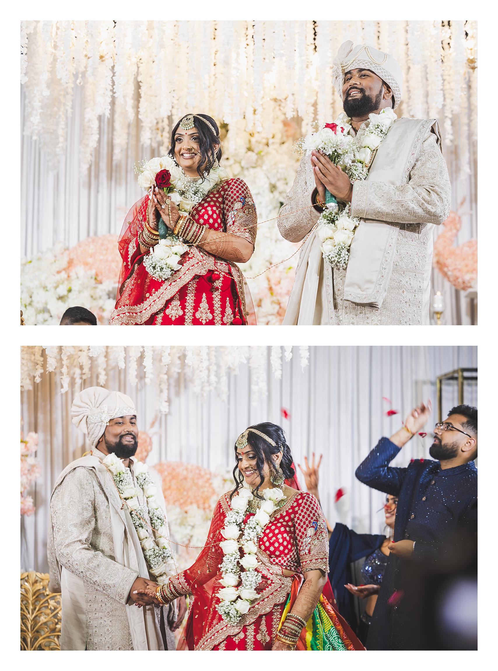 When both sides came together, the scale of the weekend became fully apparent. Garba brought nonstop movement and a packed dance floor, setting the tone for the wedding day. The ceremony itself was tradition-focused and thoughtfully structured, allowing space for meaningful rituals while keeping the timeline smooth for guests. With a guest count of 600, coordination and flow were critical — and the production reflected that.