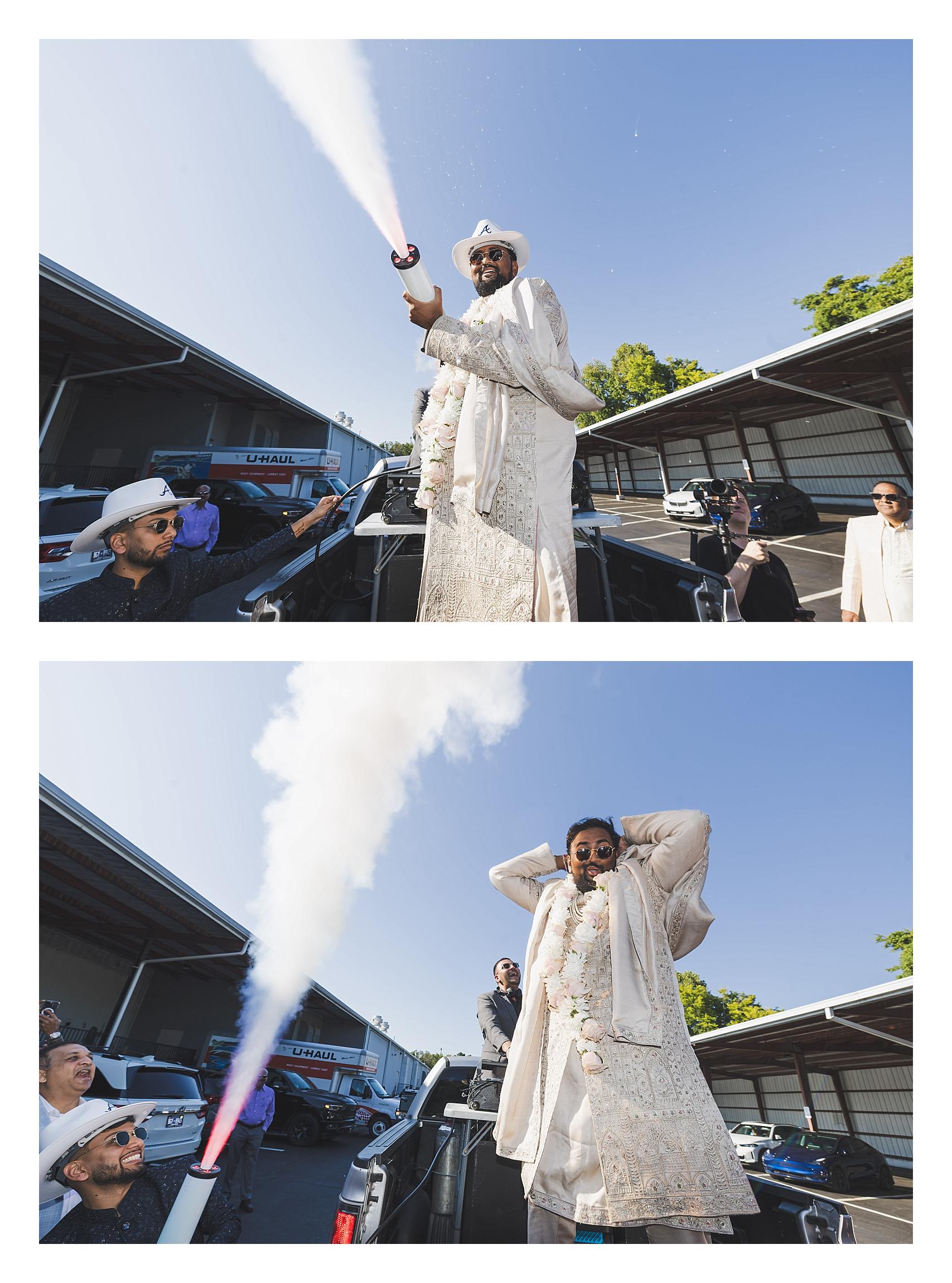 Bhavika’s events were hosted at GCA Hall, where her mehndi and Sataak brought together close family and friends in a colorful, high-spirited setting. The mehndi was filled with intricate henna, vibrant outfits, and steady foot traffic as guests moved in and out throughout the day. Meanwhile, Nilay’s pre-wedding events — including his pithi, welcome dinner, Sataak, and an early reception gathering — took place at the Clarence Brown Conference Center. His pithi carried the joyful chaos that makes these ceremonies memorable: turmeric, laughter, and family fully participating in the moment.